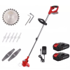 Лек и удобен телескопичен градински тример с 2 броя батерии. Ергономично оформената дръжка и допълнителната дръжка поддържат спокойна, изправена стойка и едновременно улесняват безопасната навигация на инструмента.