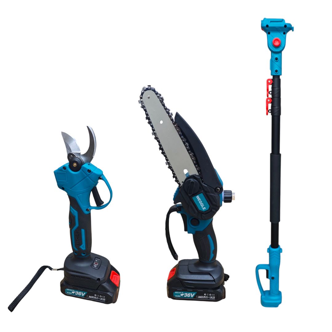 Превърнете Градинарството в Лека и Приятна работа с нашия комплект акумулаторна лозарска ножица и акумулаторен трион с 19 см шина.