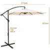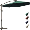 Градински висящ, сгъваем чадър, с включена метална стойка, осигурява оптимална защита от пряката слънчева светлина. Монтираната манивела на прахово боядисана алуминиева конструкция, гарантира и улеснява разтварянето и затварянето на чадъра. Покривалото е изработено от издръжлив полиестер. За осигураване на оптимална сянка чадърът се завърта и накланя.