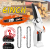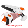 Акумулаторна резачка за клони с две батерии и две вериги.
