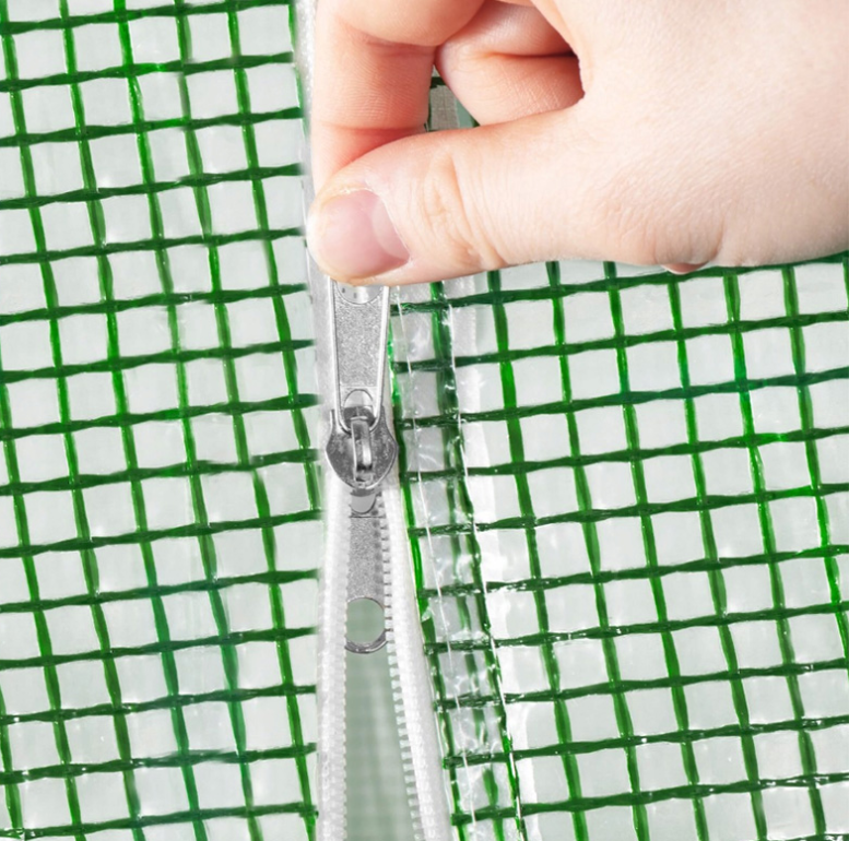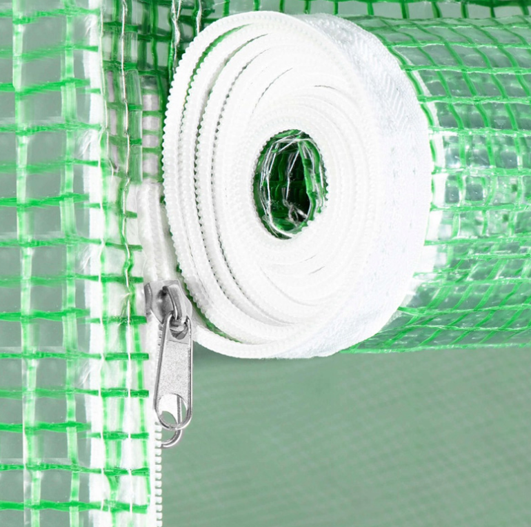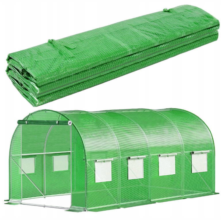 Платнището от армиран найлон / фолио за оранжерия е предназначено да предпазва нежните растения от вятър, проливен дъжд или градушка, както и от щети от вредители или птици. Платнището е с 8 бр.прозорци има 2 врати за лесен достъп и идеално проветряване, затворени с двустранен цип, който може да се навие на руло и да се държи отворена с каишки с катарами.