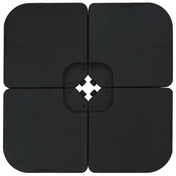 Тази стойка за чадър се състои от 4 отделения, които да бъдат запълнени с вода или пясък за тежина. Служи като здрава и стабилна основа за вашия чадър за слънце. Може да бъде запълнена с 60 литра вода или 80 кг пясък. Идеална е за чадъри с кръстовидна основа. Без да бъде напълнена, стойката е много лека, което я прави лесна за пренасяне или съхранение. С нашата стойка чадърът ви за слънце ще стои винаги изправен.